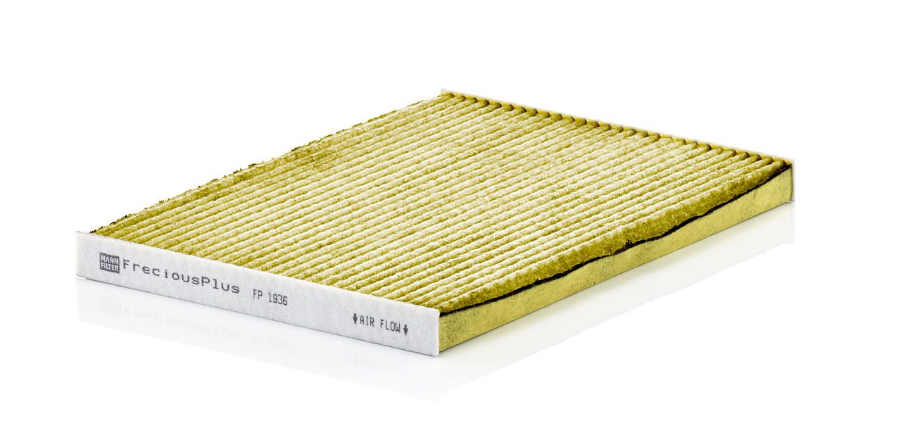Biofunctional MANN-FILTER FreciousPlus cabin air filters - nearly 100% protection against nitrogen oxides, dust, allergens and mould - harmful gases and unpleasant odours are also eliminated and virus aerosols filtered. The three-layer filter technology absorbs almost 100% of allergens, reduces the growth of molds and bacteria by more than 98% and stops fine dust almost completely.Specification