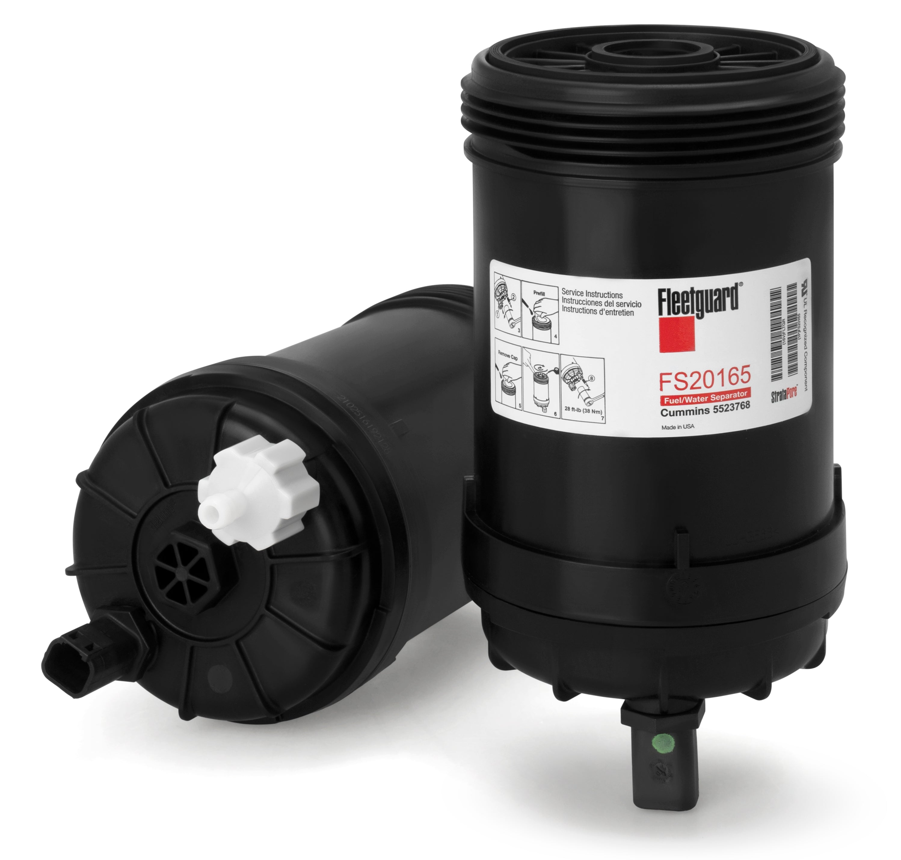 Fleetguard® FS20165 fuel water separator spin-on works to remove water and other particulates and ensures clean fuel is delivered to your engine.