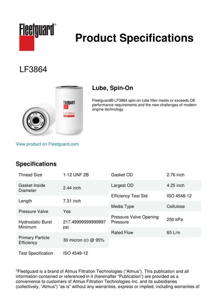 Genuine Fleetguard LF3864