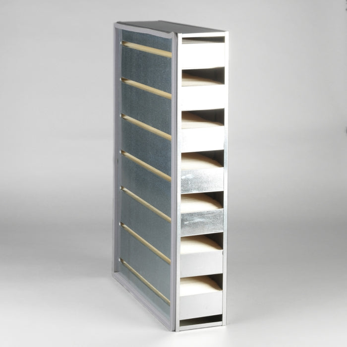 The efficiency of the element is shown using the Micron (µ) and Beta (β) ratings. The micron rating indicates the size of the particle being filtered and the beta rating the efficiency, calculated as 1/β.